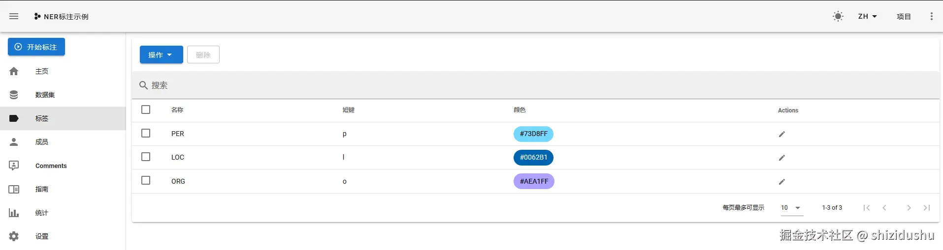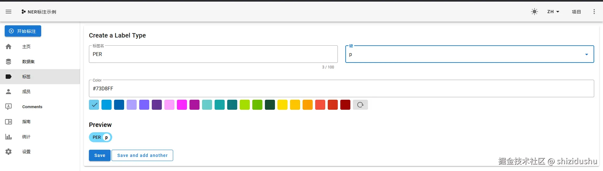 创建3个常见的标签,PER, LOC, ORG,实际应用中需要根据需求确定有哪些标签。以下以创建PER标签为例: