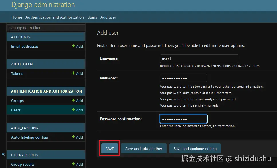 添加用户名和密码信息后,点击SAVE以保存: