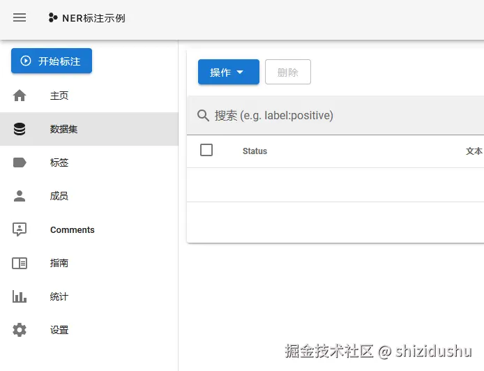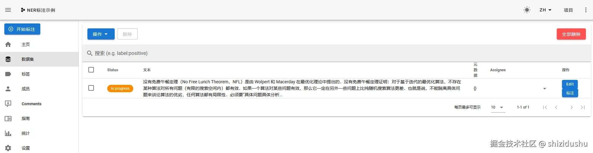 点击左侧数据集,然后选择一条数据,点击最右边的标注按钮开始标注。