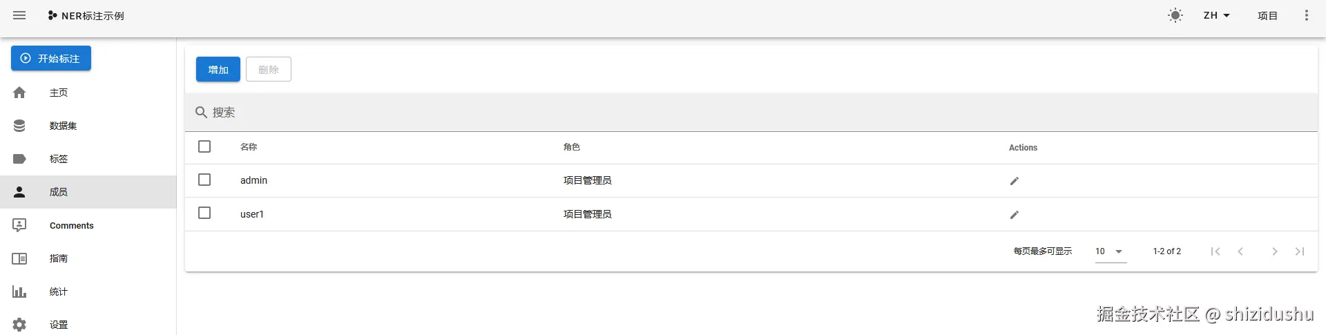 选择需要添加到项目的用户和角色,其中有3种角色(项目管理员 ,标注员,审查员)。选择好后保存: