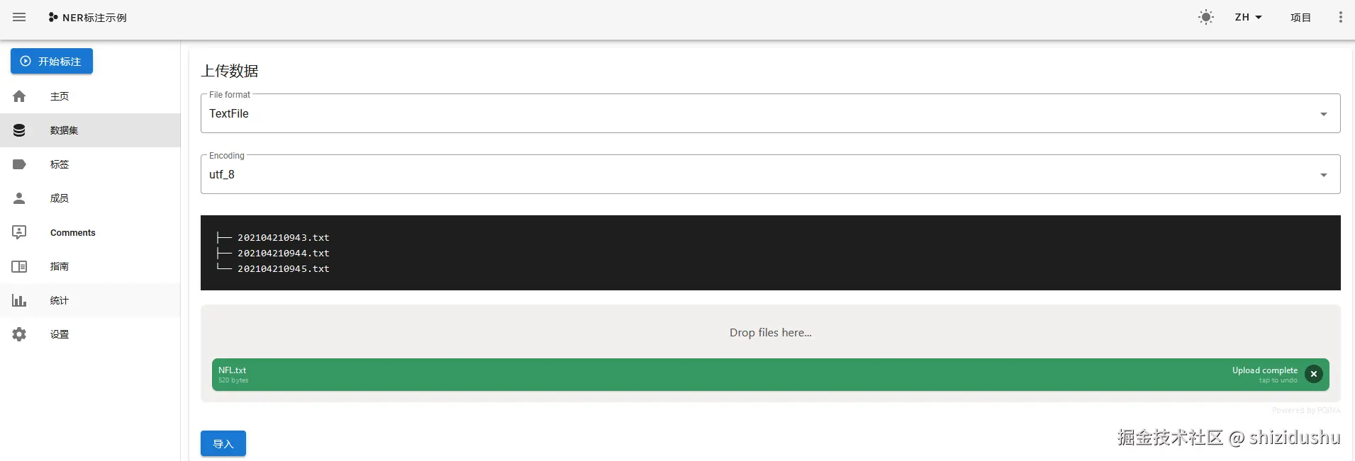 点击导入数据集: