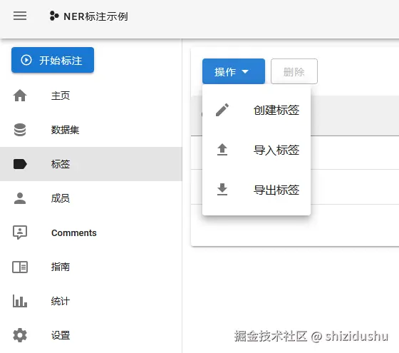 点击左侧的标签,然后移动鼠标到操作菜单后点击创建标签: