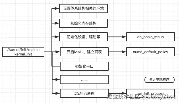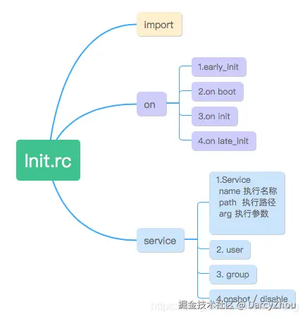 init进程是linux系统中用户空间的第一个进程,进程号为1。当bootloader启动后再启动kernel,kernel启动完后,在用户空间启动init进程,再通过init进程,来读取init.rc中的相关配置,从而来启动其他相关进程以及其他操作。