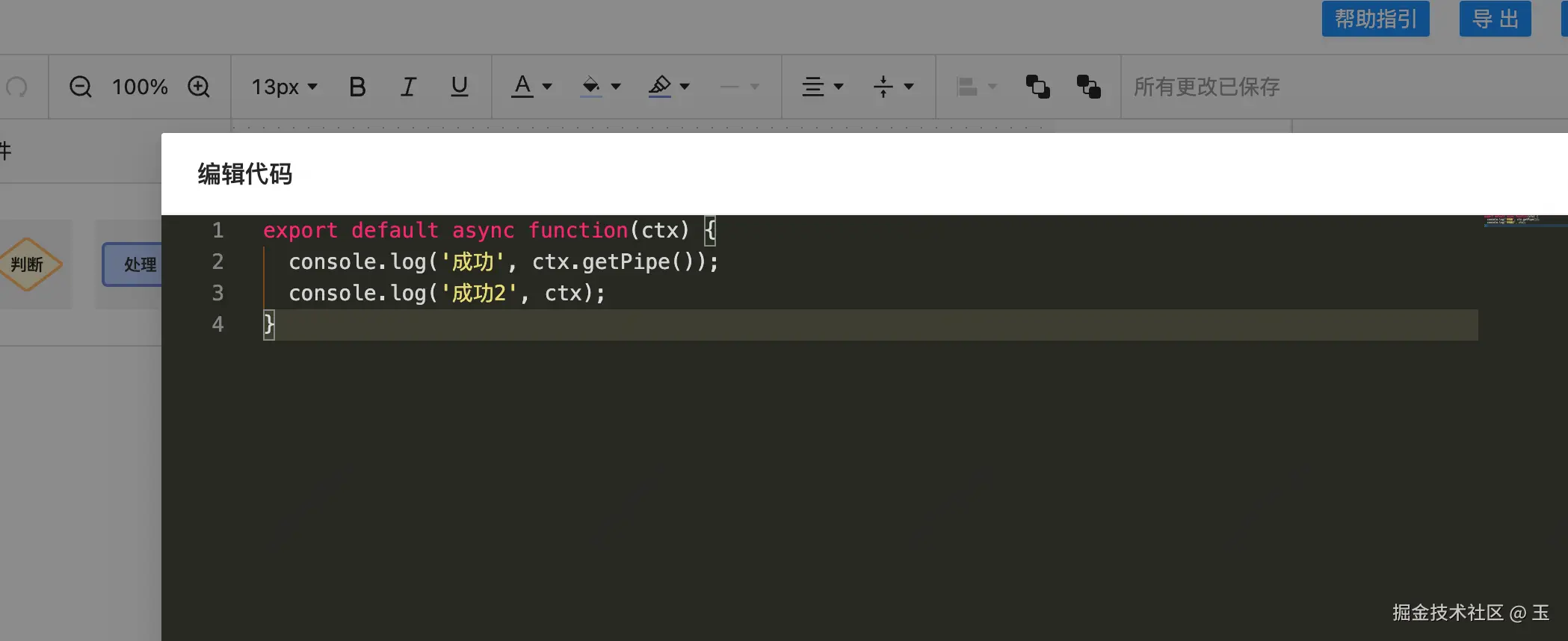 3)流程可视化 我们将流程可视化的这种开发方式称之为 "逻辑编排",它的好处(逻辑表达更为直观,易于理解)前文已经介绍过,这里就不再重复赘述。