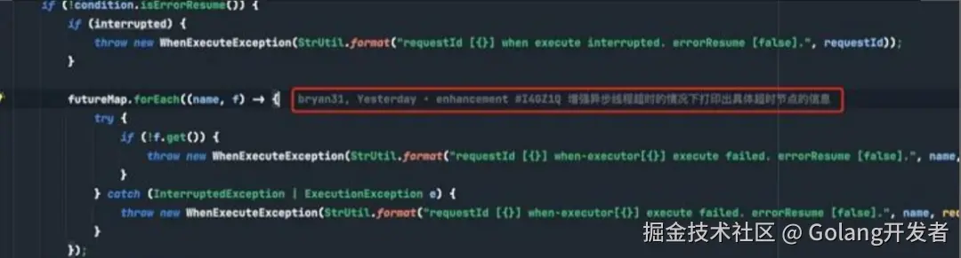 鼠标所在行会显示提交的注释信息:修改者、修改时间、修改分支情况等