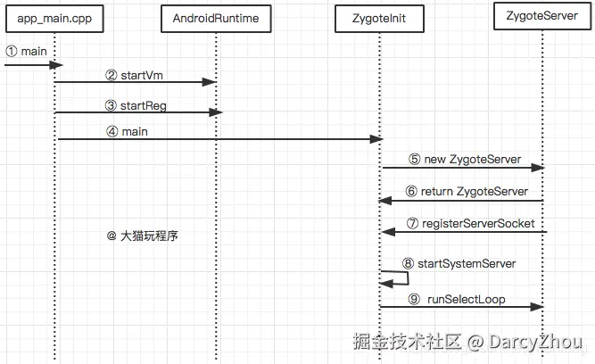 Zygote启动时序图: