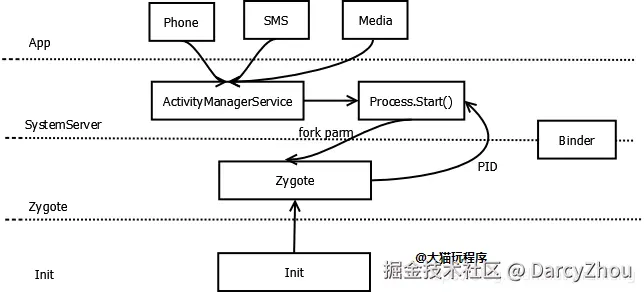- 启动参数:-Xzygote /system/bin --zygote --start-system-server --socket-name=zygote