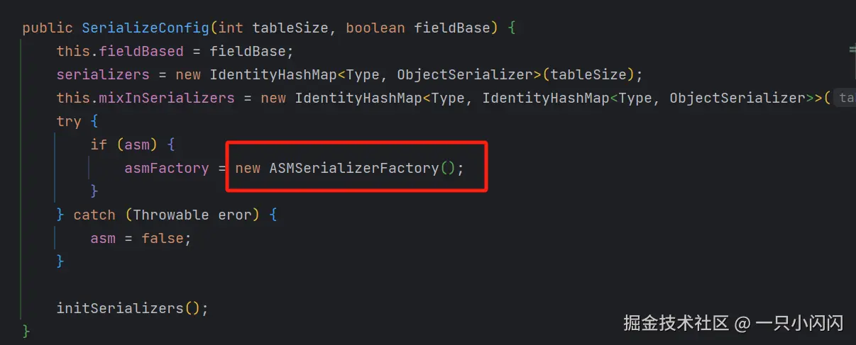 感觉这块代码有问题,点进去SerializeConfig的构造方法,里面有一个ASMSerializerFactory
