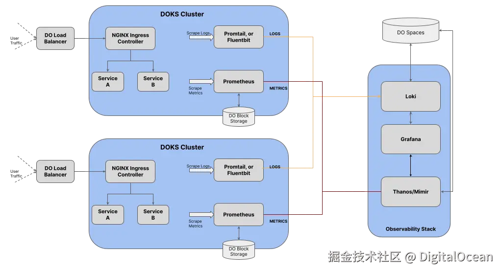 在这一部分(第 2 部分),我们将重点讨论 DigitalOcean Kubernetes 的可观察性最佳实践。首先,我们将介绍可观察性的整体概念,讨论其各个组成部分及其重要性。接着,我们将探讨企业在 Kubernetes 环境中实施可观察性时常遇到的挑战。最后,我们会提供一份全面的最佳实践清单,帮助你在 DigitalOcean Kubernetes 上实现有效的应用程序可观察性。
