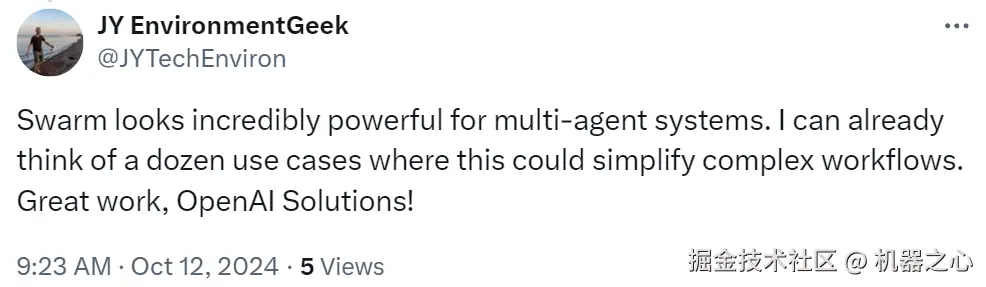 Swarm 开源后引起了热烈讨论,有网友表示这能帮助简化许多潜在的多智能体用例的工作流程。