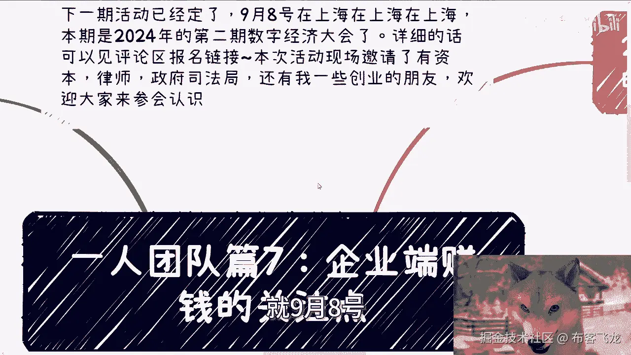 下个呃就这个月呃,就这周啊,这周日礼拜天8号在上海好吧,本期是2024年的第二期数字经济大会啊,详细的话可以进评论区报名链接呃,逸晨跟嘉宾都在里面了好吧,然后本次的话呢也邀请了资本律师啊。