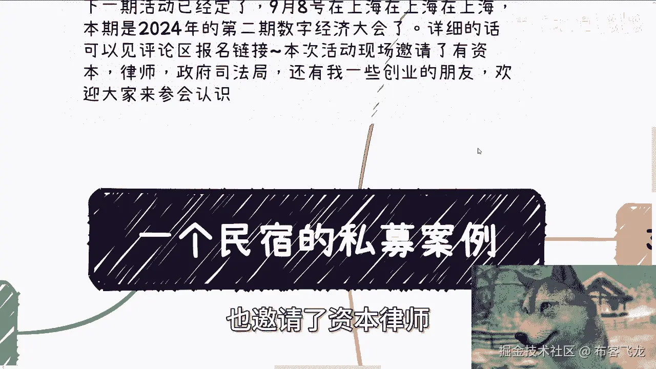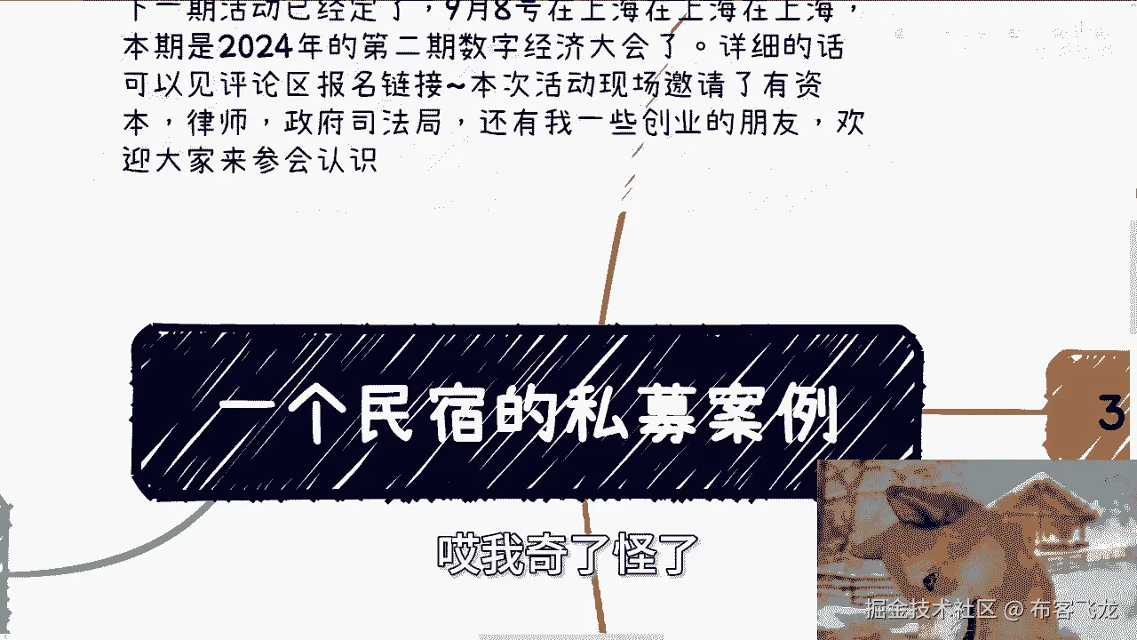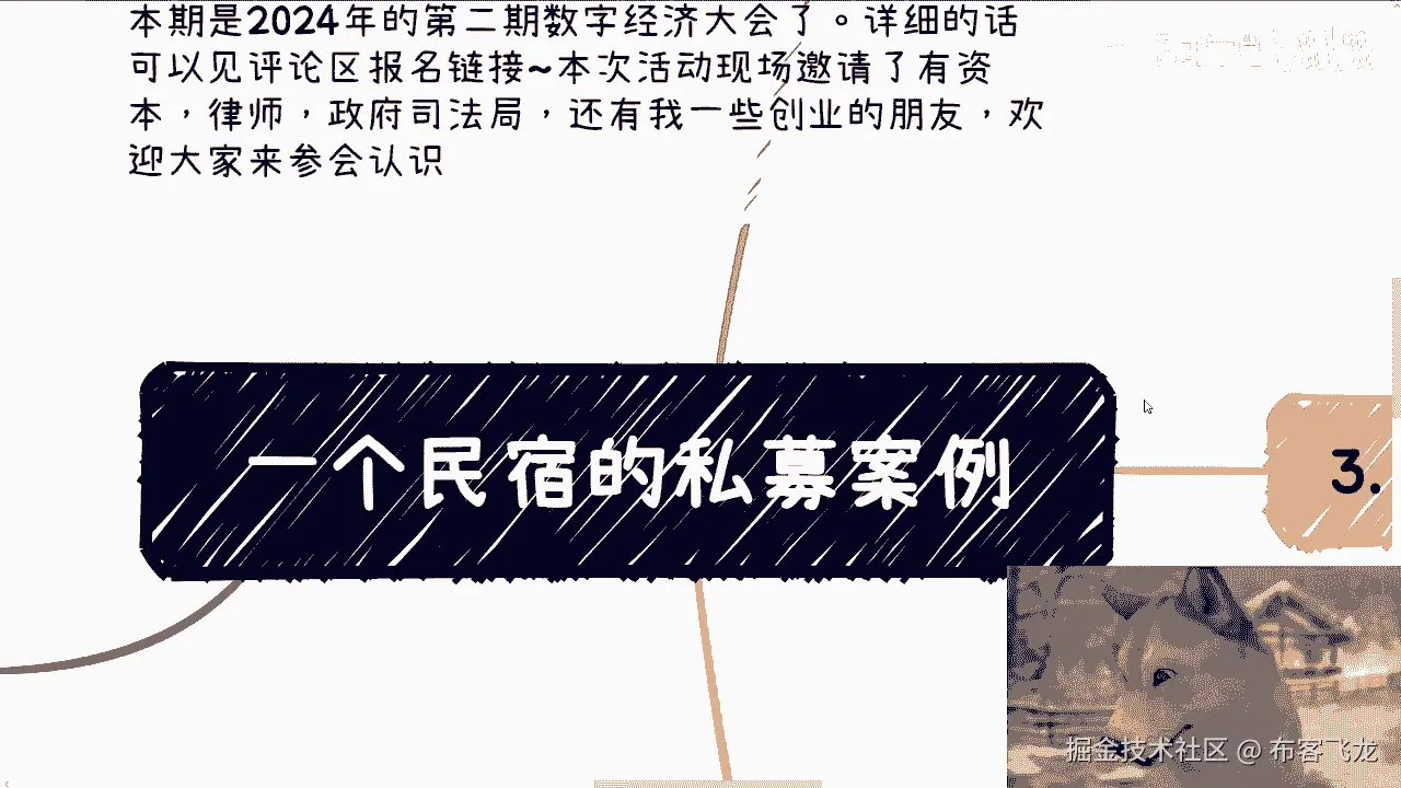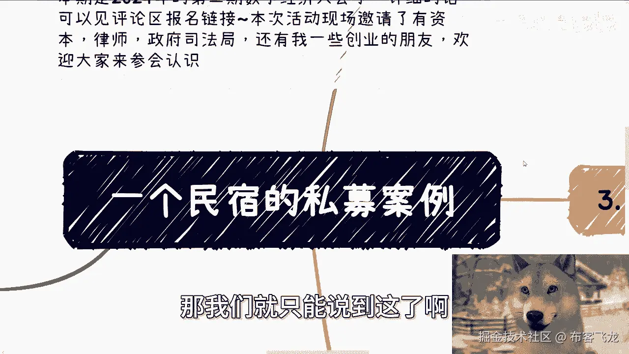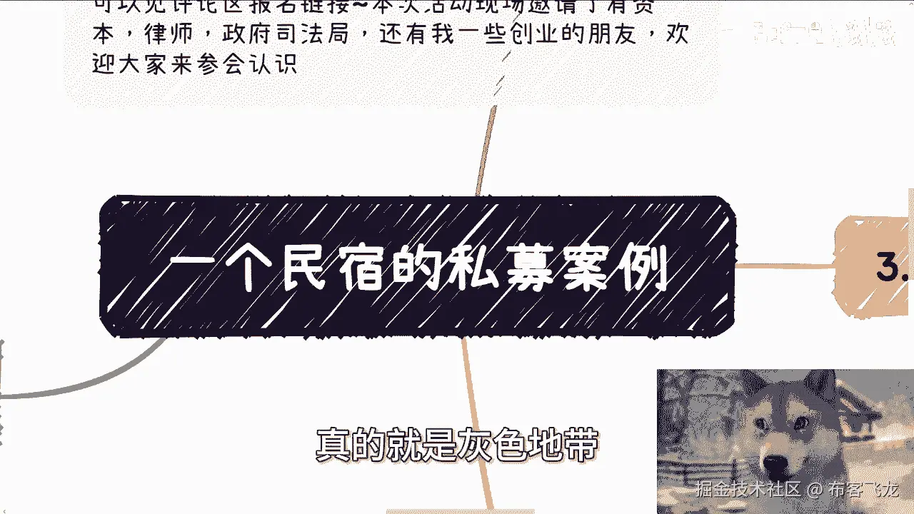 好啊,那个我们继续来讲今天的这个第二个主题啊,是一个民宿的这个私募案例啊。