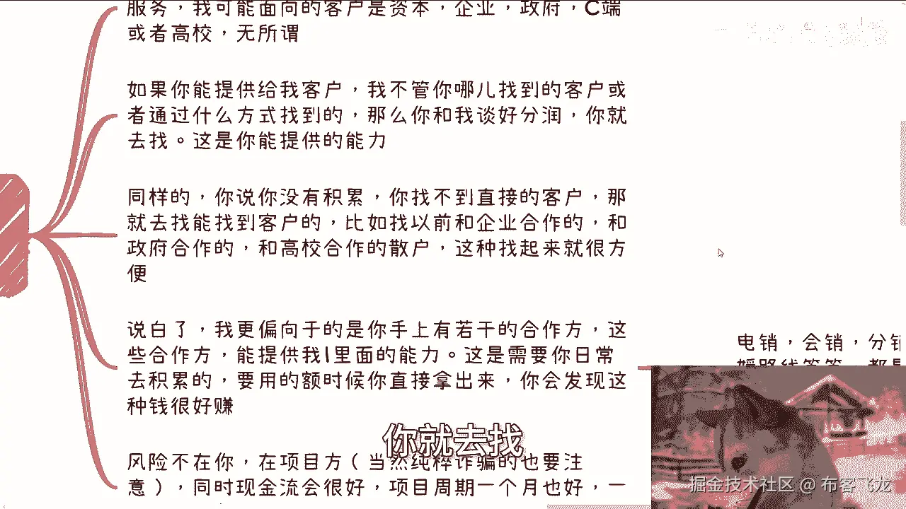 你知道吗啊,那么这个是第二点,第三点呢就是说啊你说我要是不会喝,问我是不是就不能做,其实也不是,但是你就要明白一点,就是我们以前一直说过的,就是你但凡赚快钱赚外快,或者说就是去割用户对吧。