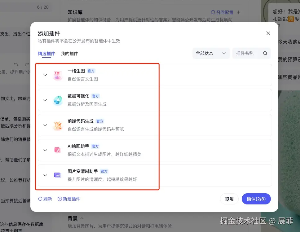我自己的智能体添加了两个 2 个常用插件,分别是:
