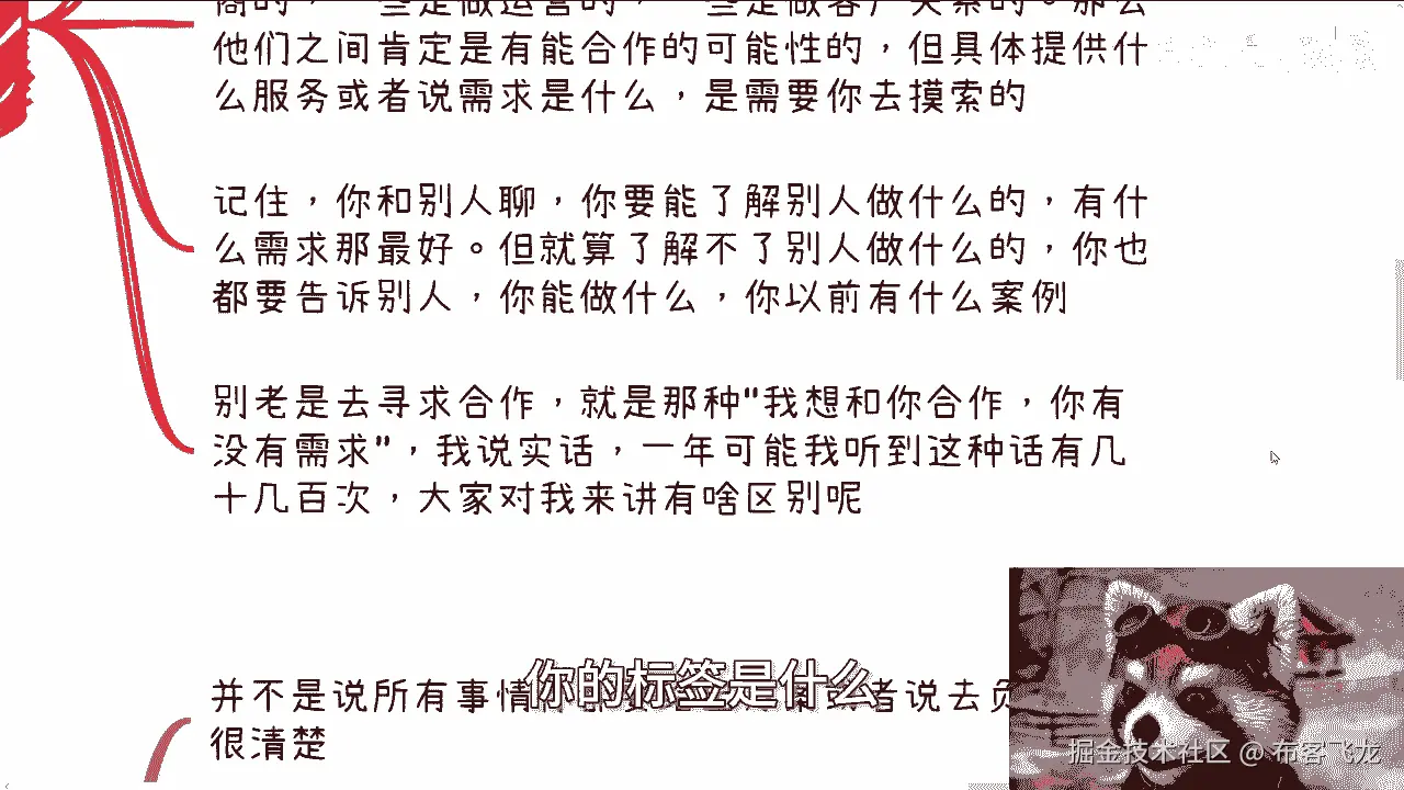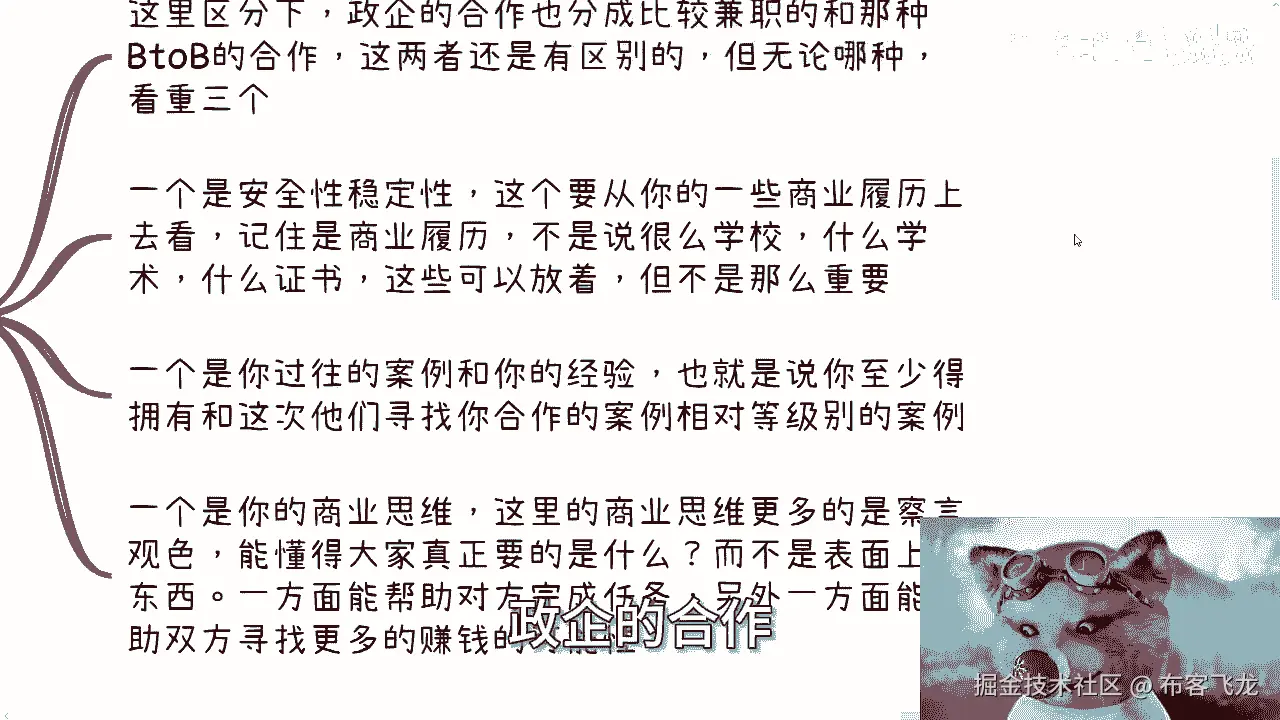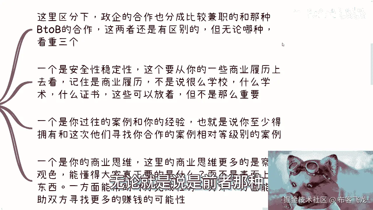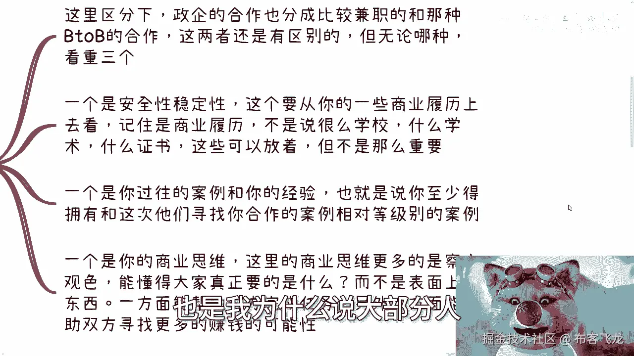 那么这里指的商业思维呢,更多的是察言观色,以及我们刚刚说的,懂得大家真正要的是什么,而不是那些表面上的东西,就是你一方面能够帮助对方完成任务,另外一方面能够帮助双方寻找更多,更多的赚钱机会。