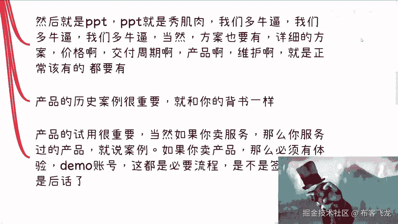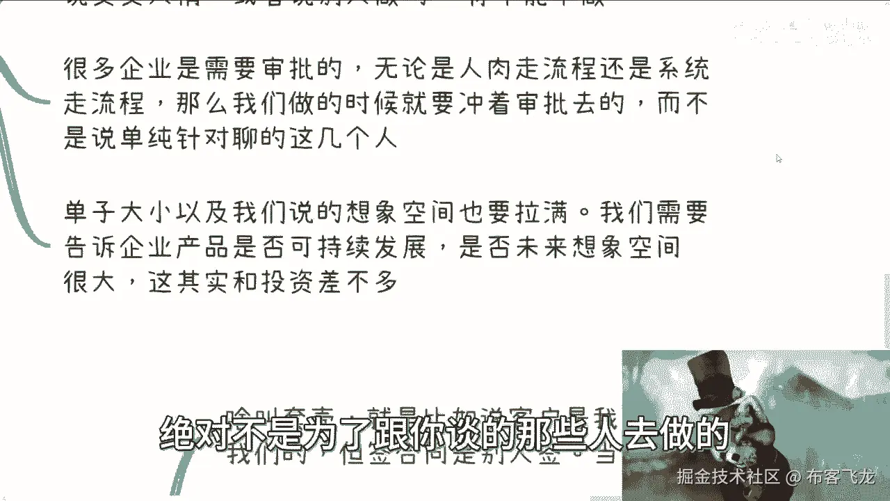 你懂得怎么察言观色,你懂得在什么样的场合讲什么样的东西啊,以及你懂得讲这些东西,到底通过什么样的一个切入点啊,也就是说政企它表面上很多项目可能是火锅,但是他的目的不在火锅上面,他有他的别的目的。