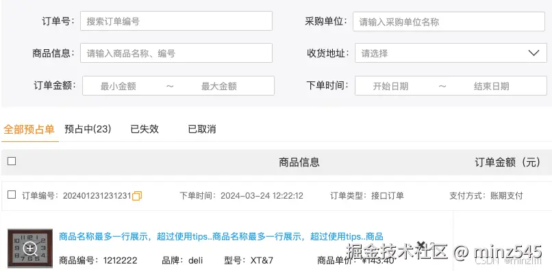 4、正式订单所要包括的功能有:搜索、状态区分、订单基础信息、导出订单数据、生成送货单等能力,也需要拆分派单、删除订单、进行退货等其他功能。