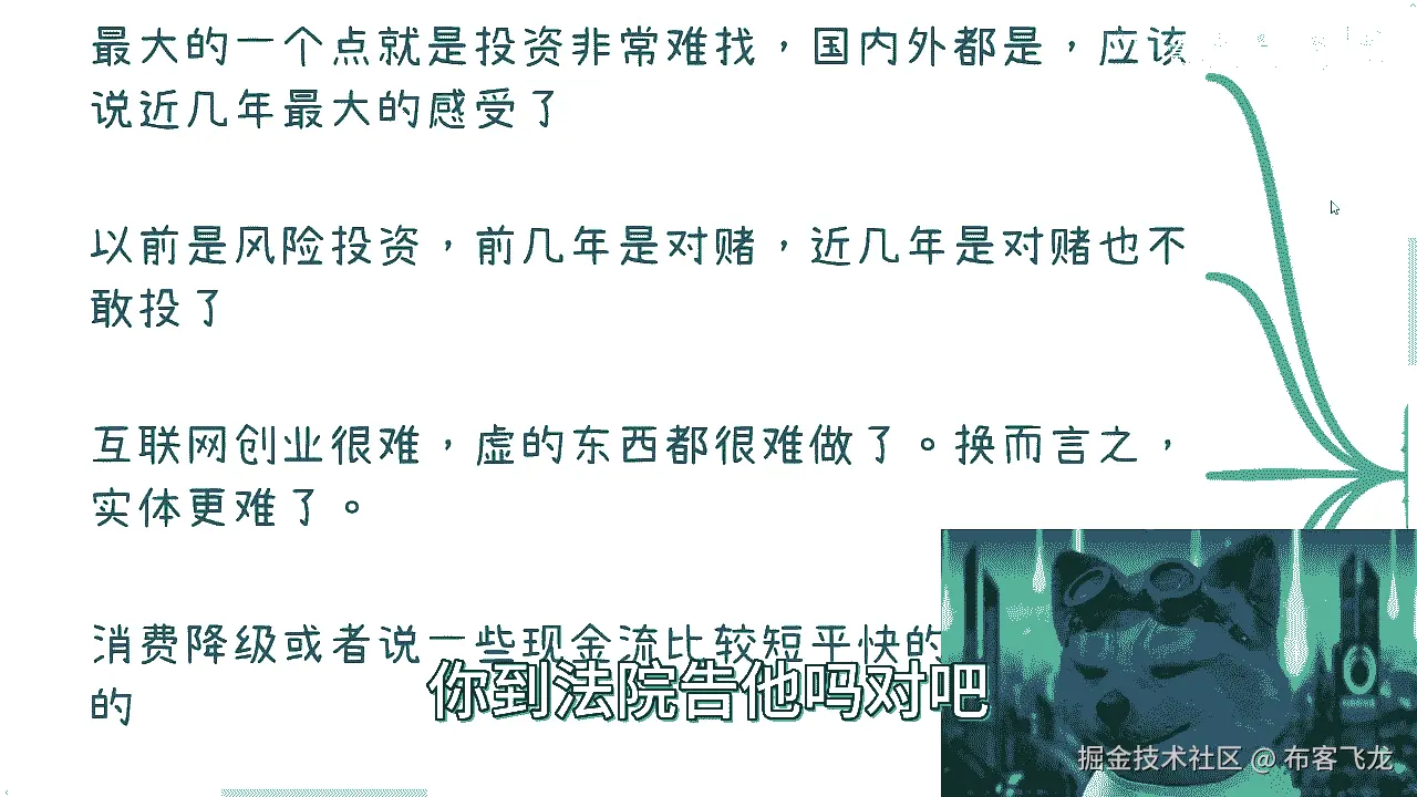 就是说投资特别难找啊,就国内外都是一样的,就我最近了解下来。