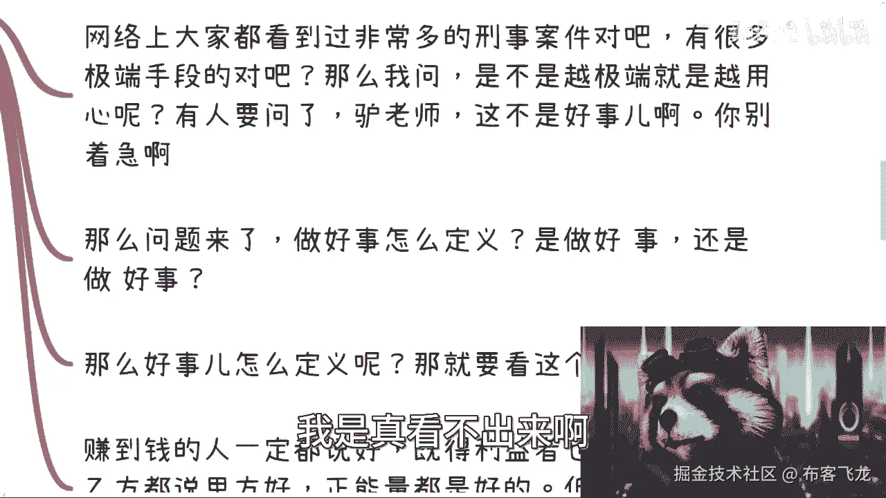 你才有可能真正的明白什么叫做好一件事情,或者说做一件好事情,别的都是扯淡啊,别的都是扯淡,这就好像到今天为止,b站还有一些评论区的小伙伴再来跟我说,他说啊,就上来就跟我就跟我讲大道理,你知道吗。