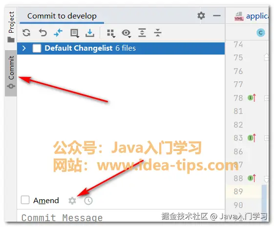 首先,我们点击左侧的【Commit】边框,再点击里面的设置图标。