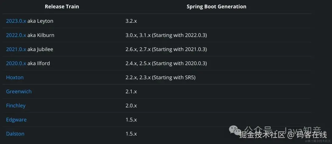 这是 springCloud 和 springboot 版本之间的对应关系: