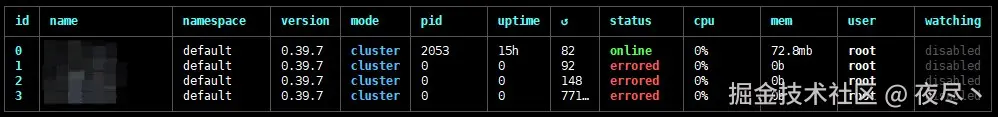 通过 npm 启动时并没有将这个进程直接托管给 pm2,而是通过 npm 启动了一个进程,pm2 只是监控这个进程,所以 pm2 并不能很好地管理这个进程,上面的截图中也可以看到版本号是 0.39.7,其实这个是服务器上 nvm 的版本,而不是 nuxt3 程序的版本。