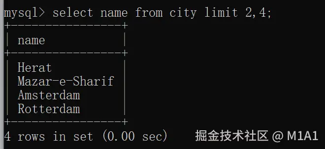 在 MySQL 中,LIMIT 可以使用两个参数来实现,效果与上面的写法相同: