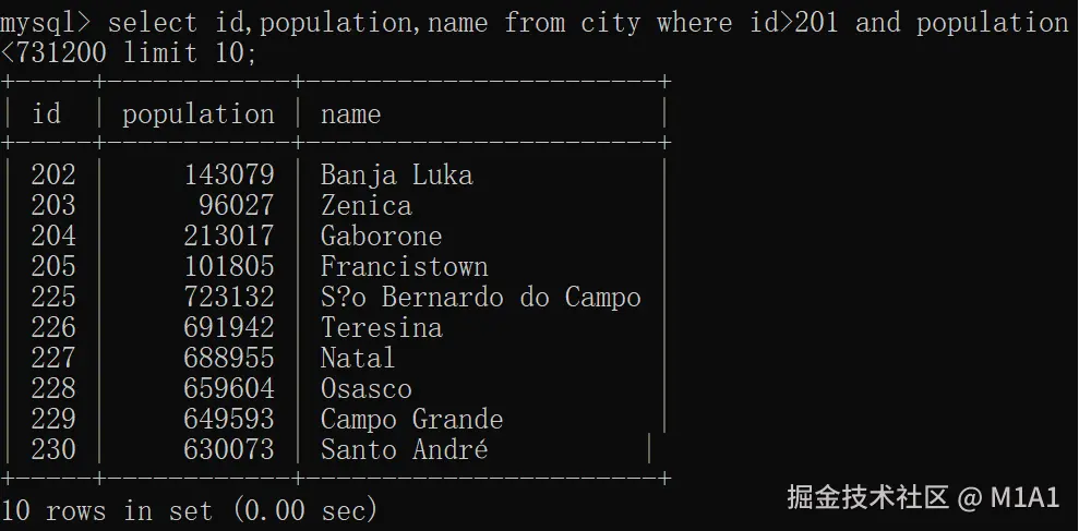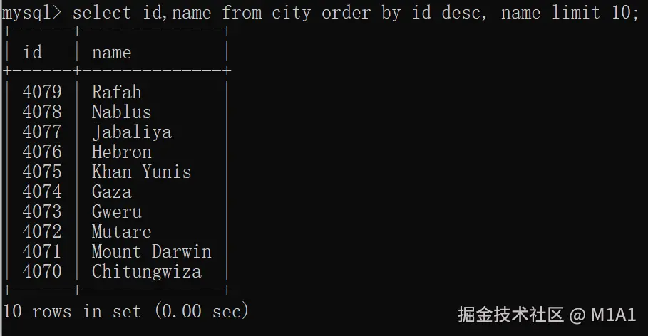 - LIMIT:限制返回的记录数,这里是 10 条。