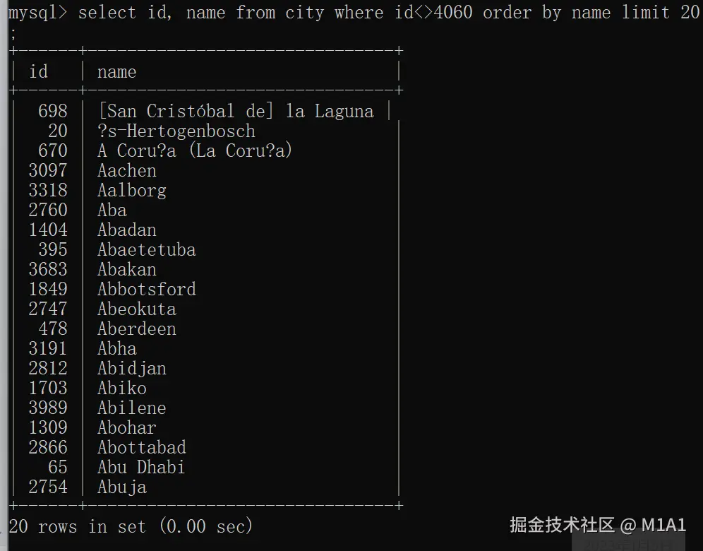 LIMIT 20, 10; -- 跳过前 20 条,返回 10 条记录