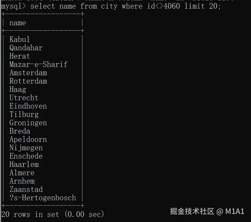 在这个例子中,20 是偏移量,10 是限制的记录数。