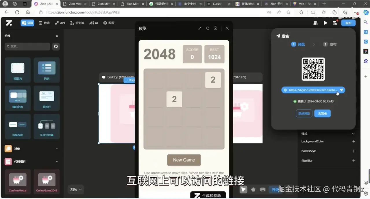 使用AI工具Cursor和Zion短短30分钟不仅成功实现了一个2048在线游戏的开发,也展示了Zion无代码快速部署的能力。如果你是希望寻求快速实现项目落地、迅速验证商业价值的开发者,这个实践方案非常值得尝试一下。