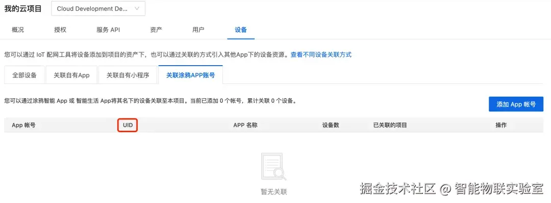 ●已关联涂鸦智能账号至云项目,操作方法请参考【关联设备】