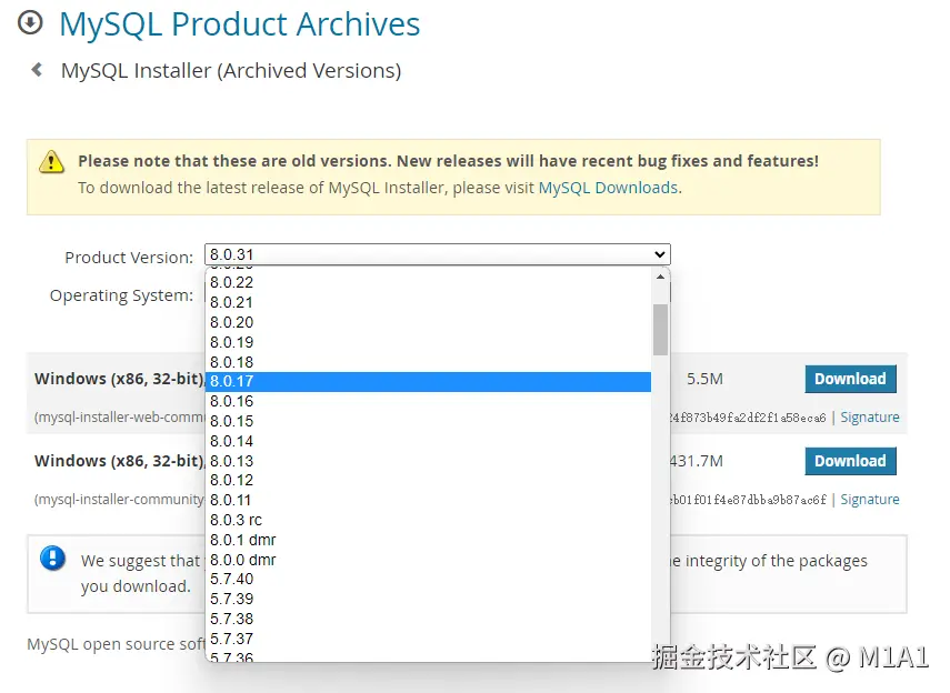 进入mysql官方下载链接,这里windows环境为例,选择社区版。(这里是传统安装方式,后续选择docker安装,更快捷)