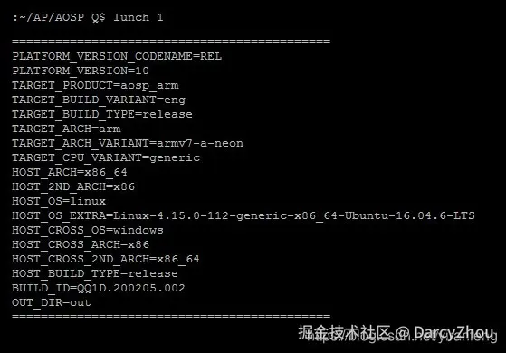 lunch aosp_arm-eng // 或者mPRODUCT-aosp_x86_64-eng ,Android10.0不一定需要lunch命令