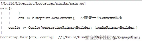 从build/blueprint/Blueprints中可知,需要编译的二进制文件名为minibp,源文件为:bootstrap/minibp/main.go,依赖于blueprint、blueprint-bootstrap、gotestmain-tests。