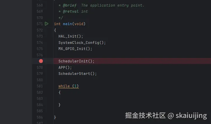 先在Sparrow启动程序这里打上断点(笔者使用的调试软件是gdb,读者也可以使用keil,都是一样的):