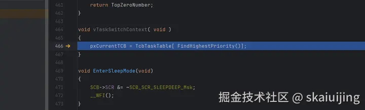 继续执行,程序来到了vTaskSwitchContext,看函数名称读者便知道,上下文切换要完成了:
