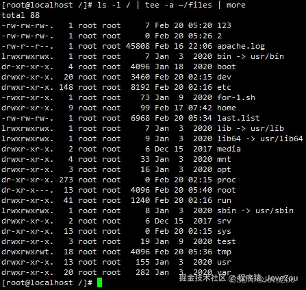 将 ls -l 的标准输出输出到 /tmp/123 当中,而 2>&1 代表标准错误也输出到标准输出当中