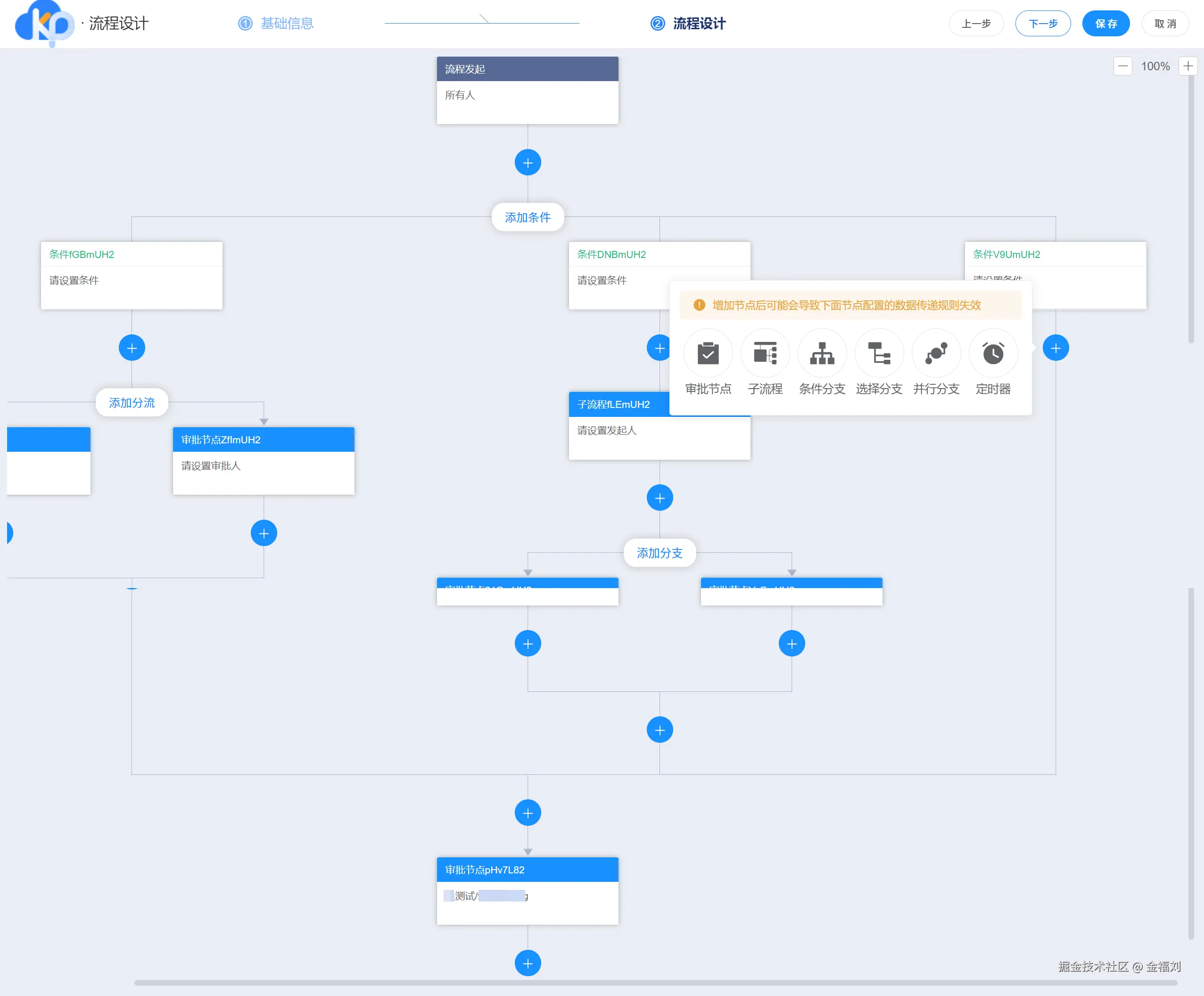 *KPaaS业务集成扩展平台的可视化流程设计,支持高度定制化流程设计,可设置多个子流程、条件分支、并行分支、定时器等 *