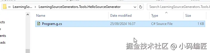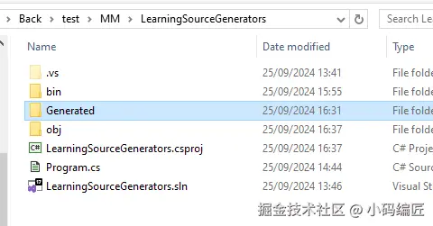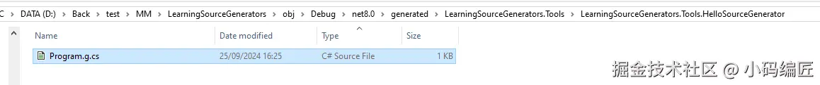 完成此配置之后,将会自动将源代码生成器所生成的代码存放到本地文件夹里面。