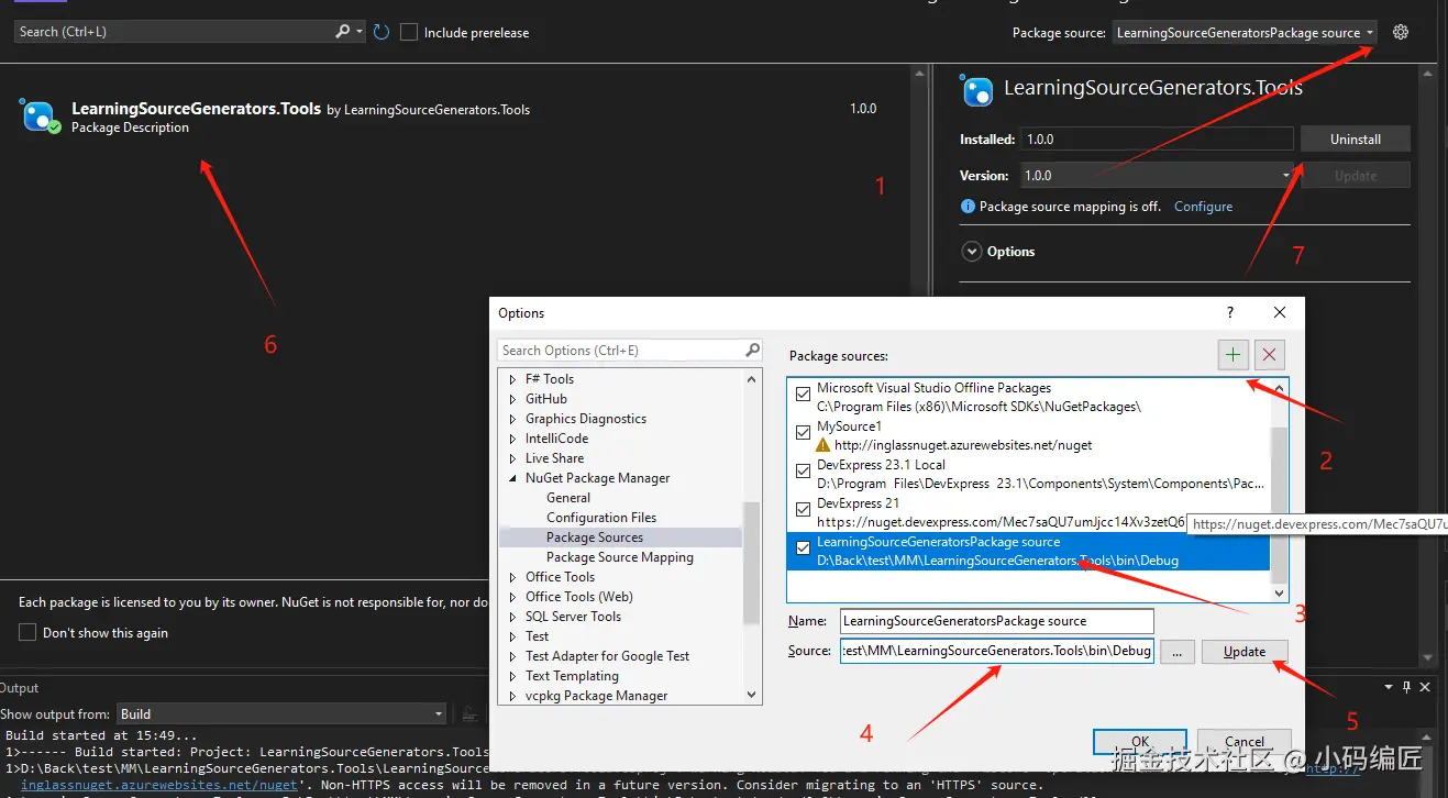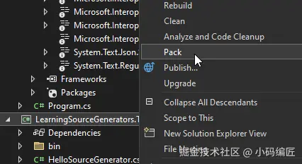 然后创建一个LearningSourceGenerators.TestConsole新的项目,并且在本地添加上源然后安装好这个包。