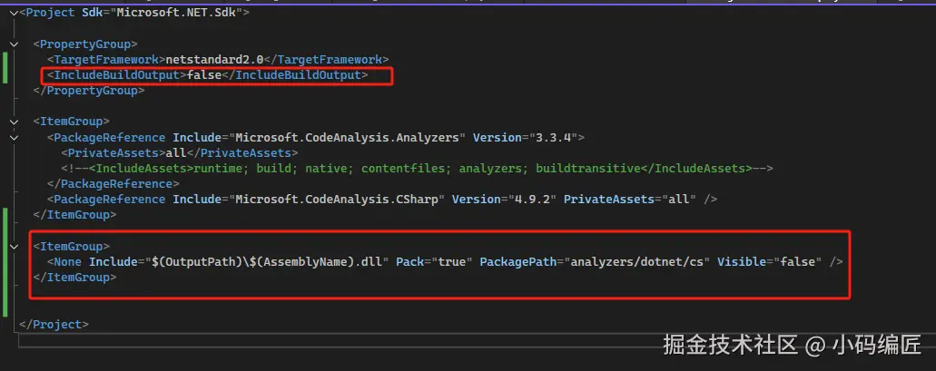 OutputItemType="Analyzer":表示引用项目的输出是一个Roslyn编译器分析器,而不是普通的项目依赖项。