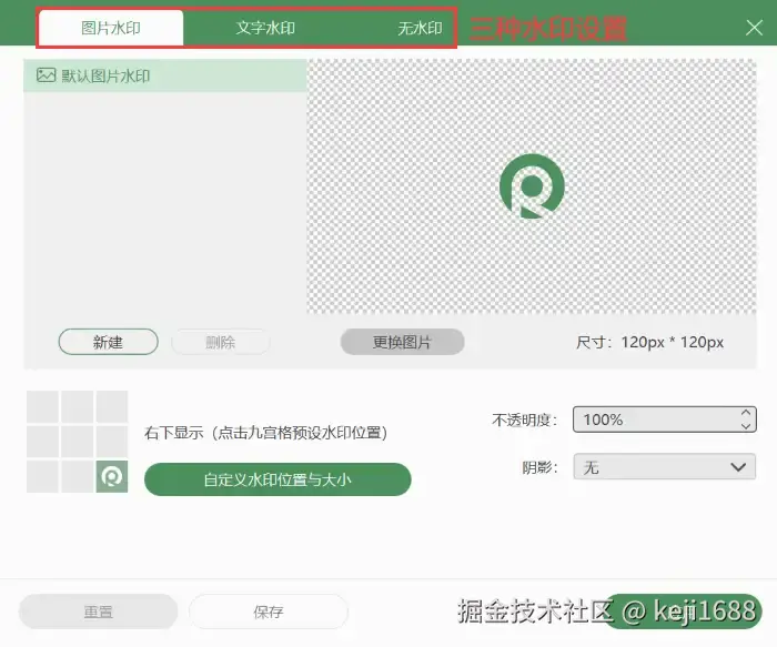 步骤3:想要视频拥有特定的水印或者想要无水印高清的录制,都可进入 【录制水印】 页面中进行设置。