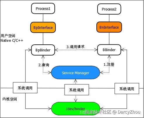 BpBinder展开后就是Binder Proxy,也就是Binder代理的含义。BpBinder是客户端用来与服务交互的代理类,负责实现跨进程传输的传输机制,不关心具体的传输内容。通信功能由其它类和函数实现,但由于这些类和函数被BpBinder代理,所以客户端需要通过BpBinder来发送Binder通信数据。