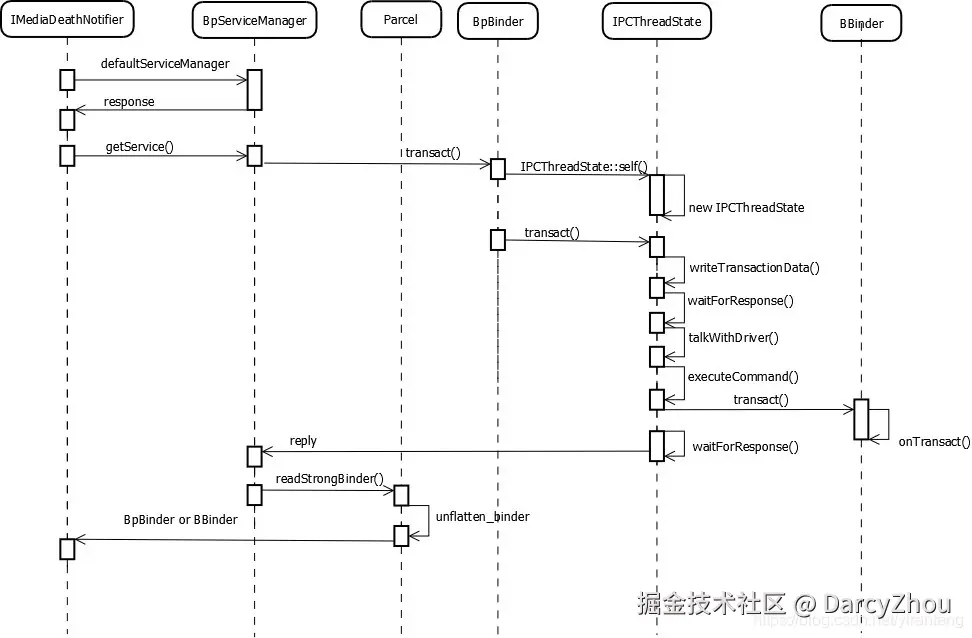(1)客户端进程获取ServiceManager的代理对象BpServiceManager,主要通过new BpBinder(0,xxx)得到;