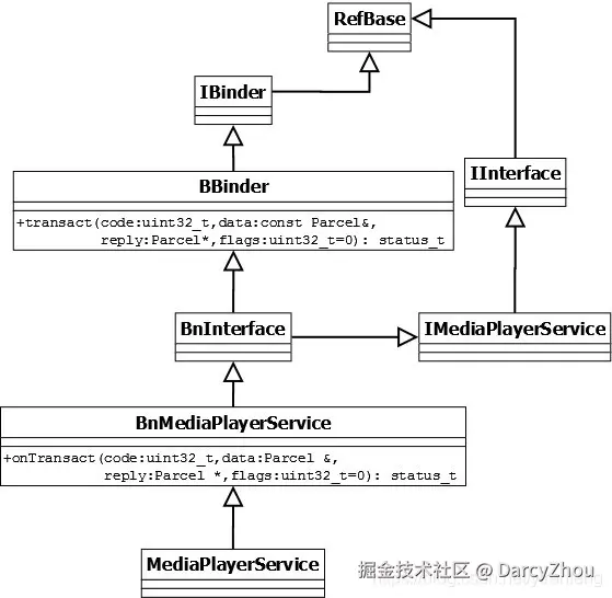(1)服务端存在一个Binder实体--BBinder,以及对应的实体接口--BnInterface;
