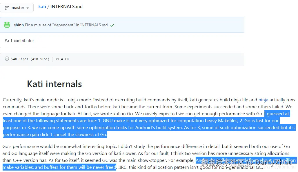 关于Go版本kati编译速度问题,可以通过kati自带文档:build/kati/INTERNALS.md来查看: