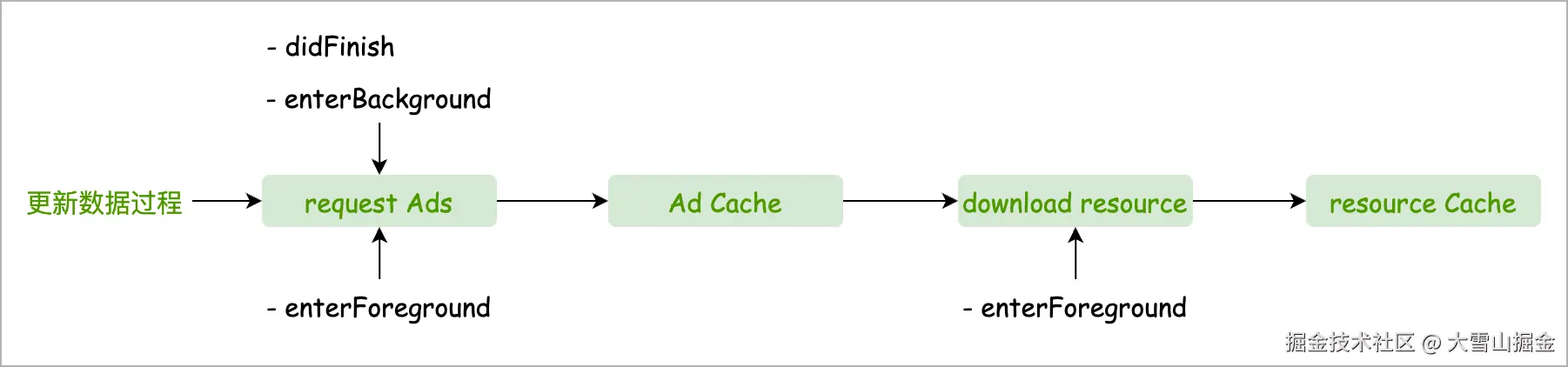 当 App 进入后台时,也会触发数据更新的逻辑,目的是为了获取最新需要展示的广告数据,在下次启动(冷启或热启)时,再次进行展示。 -