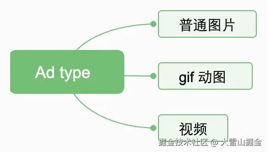 开屏广告展示的资源具有多样性,在设计框架的时候就要考虑到多种格式资源的适配,这会直接影响框架的架构选择,常见的资源格式如: