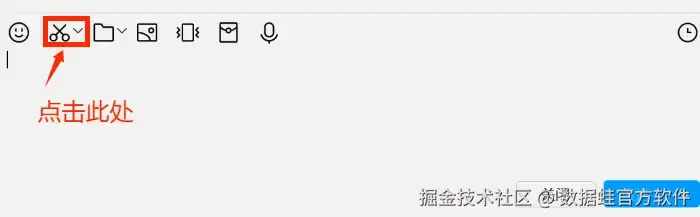步骤1: 首先打开QQ,在聊天窗口中找到剪刀形状的截图工具,点击唤出屏幕录制界面。